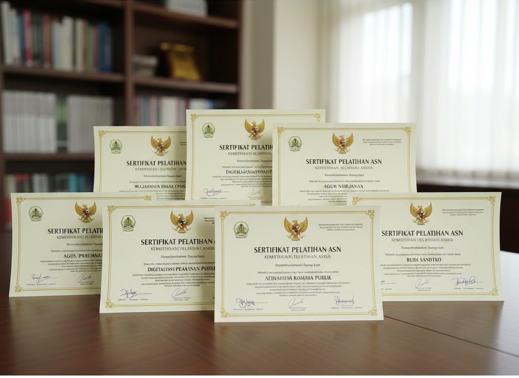 Di banyak institusi pemerintahan maupun organisasi swasta, sertifikat pelatihan menjadi pemandangan yang akrab. Rak pejabat, berkas kepegawaian, dan portofolio karier sering dipenuhi oleh lembar-lembar bersampul yang menandakan keikutsertaan dalam diklat, workshop, atau seminar. Secara administratif, koleksi sertifikat ini terlihat rapi dan meyakinkan: bukti bahwa organisasi peduli pada pengembangan sumber daya manusia dan bahwa pegawai aktif mengikuti pembelajaran. Namun di balik kilau kertas tersebut, ada kenyataan yang tidak selalu menyenangkan: perubahan nyata dalam cara bekerja dan hasil kerja sering tidak terasa. Artikel ini mencoba menggali mengapa sertifikat bisa ada sementara perubahan tidak muncul, dengan bahasa sederhana, gaya naratif dan deskriptif, sehingga mudah dipahami oleh pembuat kebijakan, penyelenggara pelatihan, atasan, dan peserta.